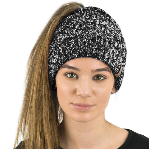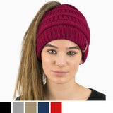 Plain Colour Soft Ribbed Ponytail Beanie Hat